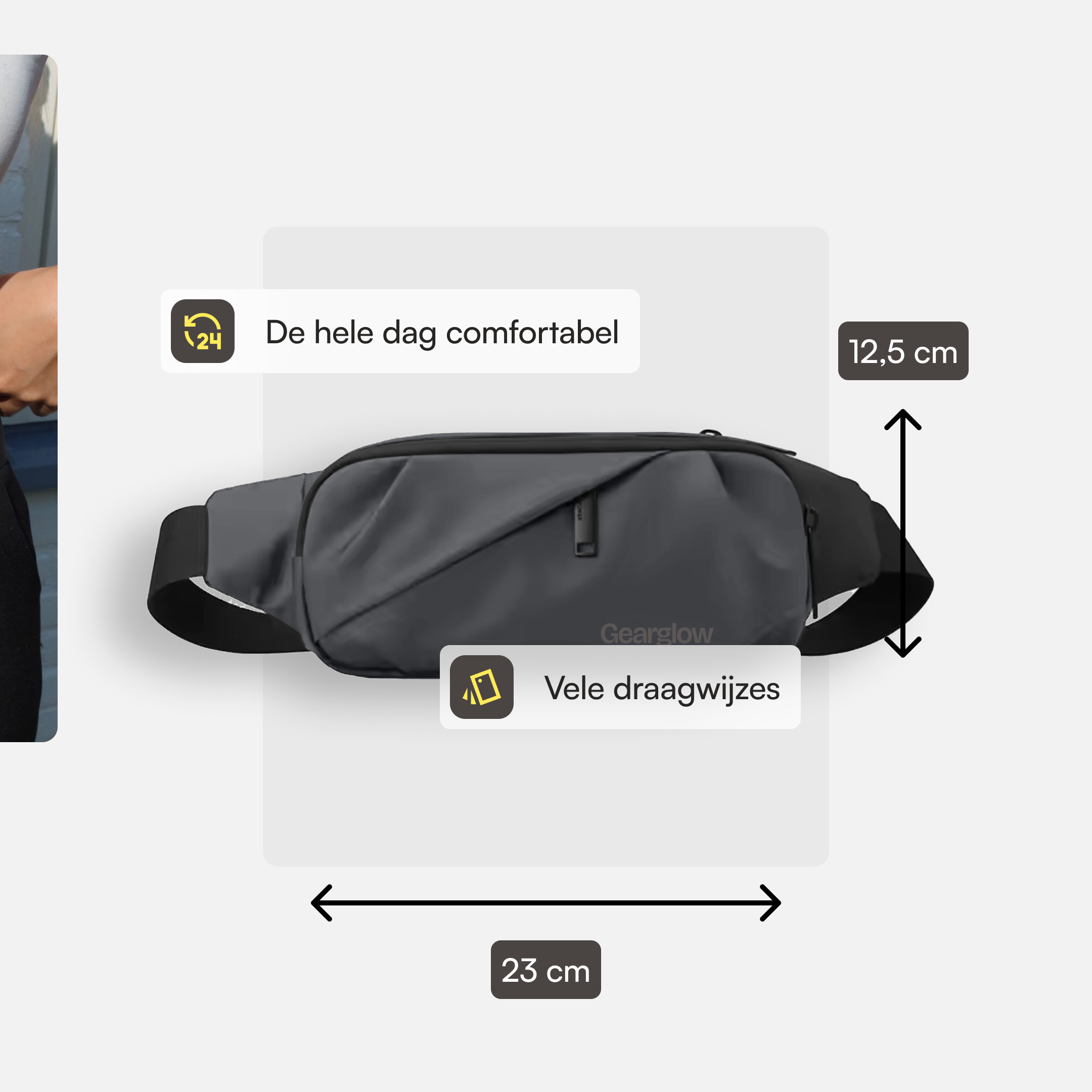 Op zoek naar een heuptas die alles meeneemt zonder in de weg te zitten? De GearGlow® Heuptas is licht, waterdicht en verrassend ruim. Zet hem strak of losjes, draag hem zoals jij wilt en houd je essentials altijd binnen handbereik. Perfect voor dagelijks gebruik, citytrips en festivals. Welke kleur is jouw favoriet?