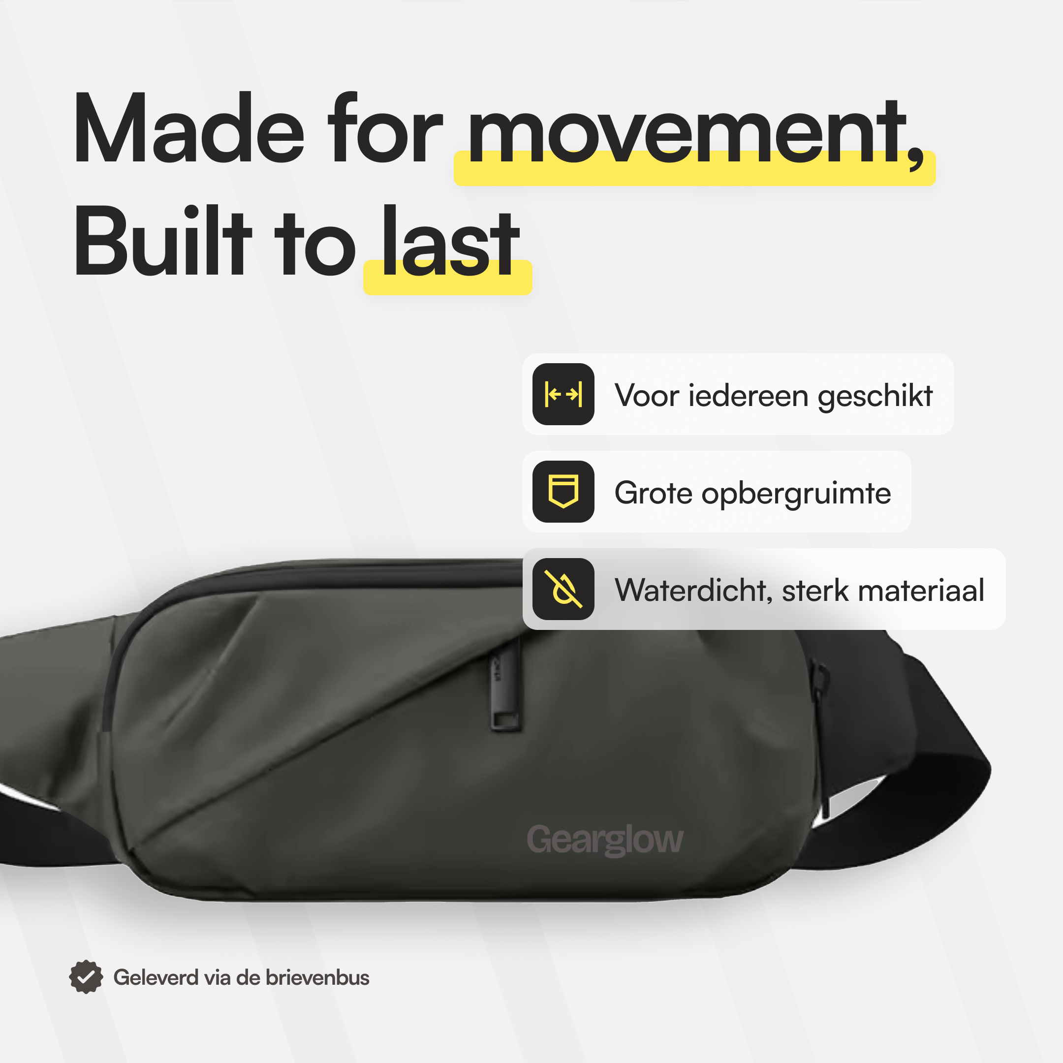 Op zoek naar een heuptas die alles meeneemt zonder in de weg te zitten? De GearGlow® Heuptas is licht, waterdicht en verrassend ruim. Zet hem strak of losjes, draag hem zoals jij wilt en houd je essentials altijd binnen handbereik. Perfect voor dagelijks gebruik, citytrips en festivals. Welke kleur is jouw favoriet?